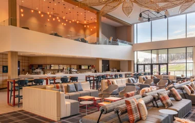 It's the beating heart of the Resort Enjoy a drink with your partner on the mezzanine, get together on the comfortable sofas beside the bar, watch the shows in the evening, bask in the sun on the terrace... Le Météore is lively whatever the time of day. The comfortable, colourful atmosphere creates a bright cosy ambiance, overlooking the surrounding landscape through large picture windows.
