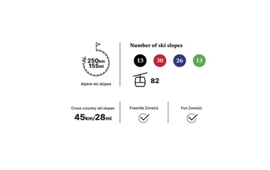 Ski through the larch forests of the sunny southern Alps, an ideal terrain for all level skiers with 80% of runs above 2,000 m