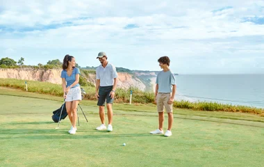 Tennis and flying trapeze are two of the family activities offered at Club Med, and golfers have a heavenly course close by, with a perfect panorama overlooking the sea.